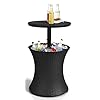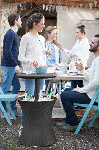 Want to convert your Cool Bar from cooler/coffee table into a party-perfect cocktail table? Simply lift the lid and twist the locking ring. Voila! Cold drinks, Cool Bar, instant party! And to keep the party going, the Cool Bar’s 7. 5 gallon cooler can keep drinks chilled for more than 12 hours! The top rises smoothly from 22. 5 inches to 32. 5 inches in overall height and locks into place to prevent it from falling when topped with party provisions. And when you are done, simply remove the built in drainage plug for easy cleanup. When you’re ready to change the mood, the top of the cooler can be twists back down into a sleek cocktail or coffee table. As friends gather around the Cool Bar, you’ll feel confident that this contemporary piece adds just the right element of class and style. So whether you need a stylish accent table or a functional party accessory, you’ll have it all — with the Cool Bar from Keter. At the same time as the compact design will easily fit into the layout of even the smallest deck, patio, or yard space, in case you have larger outdoor living areas, you’ll place one on either side of each sofa, love seat, or chair to use as end tables. It would then be easy enough so that you can pull out all the Cool Bars and stock them with beverages and ice whenever making a decision to host a large gathering. Features & Benefits: Dimensions: 19. 5D x 33. 2H in. Lid extends upwards into table 10 in. above rim Sturdy engineered legs for optimal fortify 7. 5 Gallon drink storage capacity to care for up to 40 12 oz. cans with ice Built in drainage plug makes cleanup a breeze Beverage cooler keeps drinks ice cold for up to 12 hours Sleek contemporary design blends with all kinds of indoor or outdoor patio decor Table top locks in place for easy access to drinks Weather-resistant – can be left outside without worrying about rust, decay and other weather-related damage Easy to assemble, easy to take care of and easy to use Perfect centerpiece for your outdoor gatherings or summertime parties