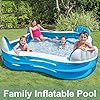 Inflatable Swimming Pool, 229 x 229 x 46cm 4Backrest Seat Family Inflatable Pool Children Inflatable Fun Swimming Pool, with Cup Holder, Family Paddling Swimming Pool Water Fun Beach Party