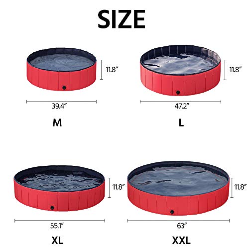 Waterproof & non-slip: The dog swimming pool is covered by durable PVC material to provide a high-quality swimming place for your pets in the garden or on the beach. As well as, the anti-skid bottom of the swimming pool can prevent your pets/kids from slipping when they’re splashing around in the pool.