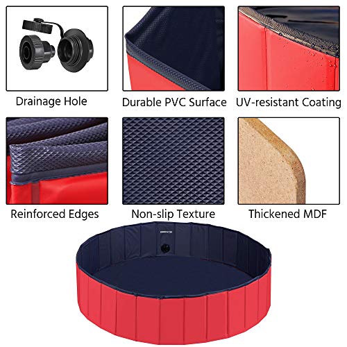 Yaheetech Red Foldable Hard Plastic Kiddie Baby Dog Pet Bath Swimming Pool Collapsible Dog Pet Pool Bathing Tub Kiddie Pool for Kids Pets Dogs Cats