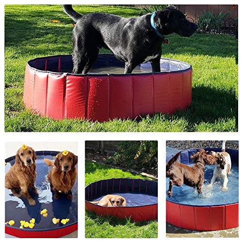Waterproof & non-slip: The dog swimming pool is covered by durable PVC material to provide a high-quality swimming place for your pets in the garden or on the beach. In addition, the anti-skid bottom of the swimming pool can prevent your pets/kids from slipping when they are splashing around in the pool.
