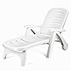Giantex Folding Lounger Chaise Chair on Wheels Outdoor Patio Deck Chair Adjustable Rolling Lounger 5 Position Recliner w/Armrests, White